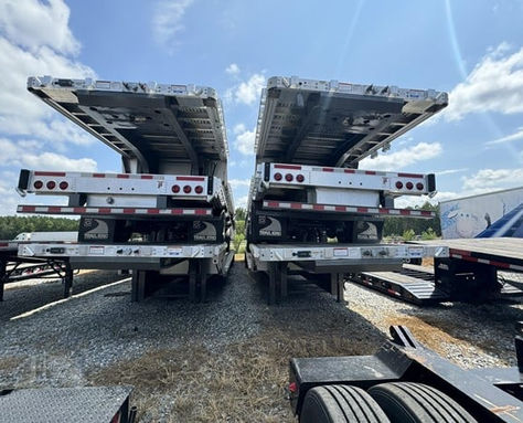 Description | 53' x 102" aluminum / steel combo drop deck w. air ride sliding rear axle to a closed suspension or opened to a 10'2" spread air release pins on rear axle. rub rails w. pipe spools sliding winches and nail strips in floor. theft detector mounted. |